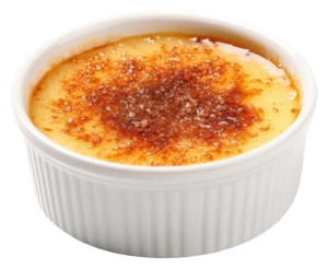 - Crema Catalana – tradycyjny, kataloński deser, który można opisać jako krem kataloński lub hiszpański krem budyniowy z karmelową skorupką. Jest to jedno z najbardziej znanych dań kuchni katalońskiej. Głównymi składnikami są mleko, żółtka jaj, cukier oraz skrobia (zazwyczaj kukurydziana), która zagęszcza krem. Tym, co wyróżnia Crema Catalana na tle innych kremów (takich jak francuski crème brûlée), jest unikalny zestaw przypraw używanych do aromatyzowania mleka. Tradycyjnie są to: cynamon (laska cynamonu), skórka z cytryny, skórka z pomarańczy. Deser podaje się w małych, glinianych misececzkach (cazuelitas). Przed podaniem wierzch posypuje się warstwą cukru i opala specjalnym palnikiem lub rozgrzanym żelaznym prętem (cremador), tworząc twardą, chrupiącą, karmelową skorupkę, którą rozbija się łyżeczką przed jedzeniem. Jest to krem o delikatnej, jedwabistej konsystencji, zbalansowanym smaku mleka, jajek i cytrusów, z kontrastującą słodyczą i chrupkością karmelowej warstwy. Różnica od Crème Brûlée: Choć oba desery są podobne, Crema Catalana zazwyczaj bazuje na mleku (nie śmietance), ma dodatek skrobi, jest aromatyzowana cytrusami i cynamonem, a tradycyjnie przygotowuje się ją na kuchence, a nie w kąpieli wodnej w piekarniku.
